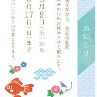 【8月~10月の営業についてのお知らせ】